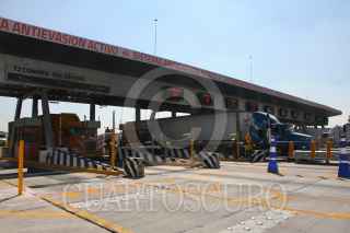 ESTADO DE MÉXICO, 19ENERO2022.- La caseta T2 de Las Américas en el Circuito Exterior Mexiquense en el Estado de México, comenzó a operar el sistema anti-evasivo, el cual cuenta con un poncha llantas que funciona mediante sensores de forma automática, con dicha medida buscan erradicar la evasión de cobro de peaje. FOTO: ROGELIO MORALES /CUARTOSCURO.COM