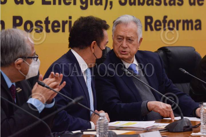 CIUDAD DE MÉXICO, 19ENERO2022.- Manuel Bartlett, director general del la CFE; José Abugaber, presidente de la CONCAMIN; Ricardo Mota Palomino, director general CENACE; Ignacio Mier, diputado y coordinador de Morena, y Rubén Moreira, diputado y presidente de la Jucopo, encabezaron el Segundo Foro: Redes Eléctricas como parte del debate de la Reforma Eléctrica. FOTO: MARIO JASSO/CUARTOSCURO.COM
