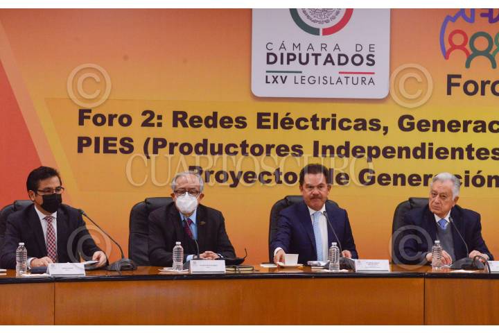 CIUDAD DE MÉXICO, 19ENERO2022.- Manuel Bartlett, director general del la CFE; José Abugaber, presidente de la CONCAMIN; Ricardo Mota Palomino, director general CENACE; Ignacio Mier, diputado y coordinador de Morena, y Rubén Moreira, diputado y presidente de la Jucopo, encabezaron el Segundo Foro: Redes Eléctricas como parte del debate de la Reforma Eléctrica. FOTO: MARIO JASSO/CUARTOSCURO.COM