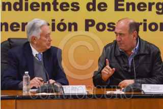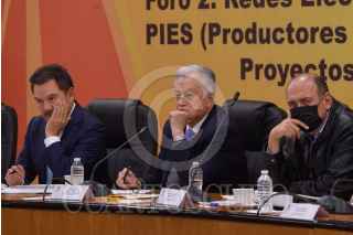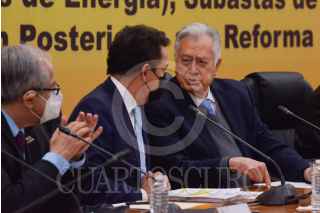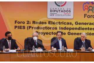 CIUDAD DE MÉXICO, 19ENERO2022.- Manuel Bartlett, director general del la CFE; José Abugaber, presidente de la CONCAMIN; Ricardo Mota Palomino, director general CENACE; Ignacio Mier, diputado y coordinador de Morena, y Rubén Moreira, diputado y presidente de la Jucopo, encabezaron el Segundo Foro: Redes Eléctricas como parte del debate de la Reforma Eléctrica. FOTO: MARIO JASSO/CUARTOSCURO.COM