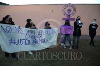 MÉRIDA, YUCTÁN, 19ENERO2022.- Hoy por la tarde, un grupo de feministas se manifestaron en la Antimonumenta de Remate de Paseo de Montejo, para mostrar su apoyo a Monica, quién a la edad de 16 años , cuando en noviembre del 2019, un grupo de 11 compañeros de la preparatoria donde estudiaba sustrajeron un video íntimo de una conversación de Facebook y lo difundieron en un grupo de Whatsapp al que llamaron Licenciados en molestar (Lem). El 30 de diciembre de 2019 acudió a la Fiscalía General del Estado a interponer una denuncia y el 24 de enero del presente año, a las 8am, será la audiencia para la resolución del caso en esta ciudad. FOTO: MARTÍN ZETINA/CAURTOSCURO.COM