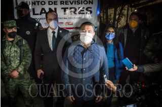 TLANEPANTLA, ESTADO DE MÉXICO, 20ENERO2021.- Marco Antonio Rodríguez, presidente municipal de Tlalnepantla, y Rodrigo Martínez Celis-Wogau, secretario de Seguridad Estatal del Estado de México, encabezaron el inicio del Operativo "Plan Tres" el cual busca reducir el robo y delitos de alto impacto transporte público mediante puntos de revisión a los usuarios por parte de elementos de seguridad federal, estatal y municipal. FOTO: MARIO JASSO/CUARTOSCURO.COM