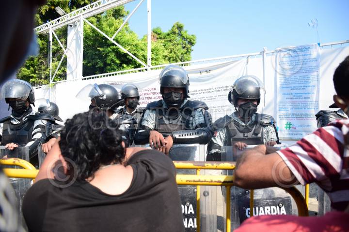 TAPACHULA, CHIAPAS, 20ENERO2022.- Un promedio de 500 sin papeles marcharon del albergue Belén rumbo a las oficinas de Regularización Migratorio, quienes piden atención a las autoridades del Gobierno Federal. Las personas gritaban consignas de libre tránsito, algunos de ellos llevan varios meses esperando que el INM les de las tarjetas por razones huminatarias. FOTO: DAMIÁN SÁNCHEZ /CUARTOSCURO.COM