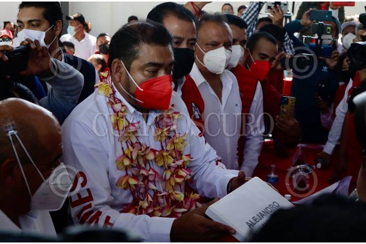 OAXACA, OAXACA, 20ENERO2022.- Se registró el diputado local Alejandro Avilés Álvarez, como precandidato único del PRI al gobierno del estado de Oaxaca. Esta actividad se realizó en las instalaciones del comité directivo estatal de dicho instituto político, sitio en el cual se omitieron las medidas de mitigación de contagio de covid-19, pues hubo aglomeración de personas. FOTO: CAROLINA JIMÉNEZ /CUARTOSCURO.COM