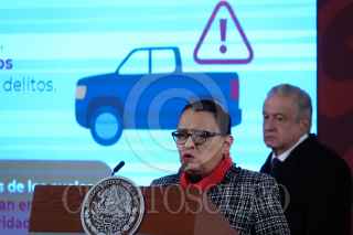 CIUDAD DE MÉXICO, 21ENERO2022.- Andrés Manuel López Obrador, presidente de México; Rosa Icela Rodríguez, secretaria de Seguridad y Protección Ciudadana; Adán Augusto López, secretario de Gobernación, y María Estela Ríos, consejera Jurídica de la Presidencia, encabezaron la conferencia matutina en Palacio Nacional, donde se informó sobre los nuevos lineamientos para regularizar los llamados “autos chocolate” a fin de evitar que se cometan actos delictivos. Asimismo, el jefe del ejecutivo expresó su satisfacción tras la compra de la refinería texana Deer Park el día de ayer. FOTO: GALO CAÑAS/CUARTOSCURO.COM