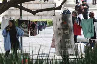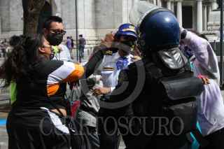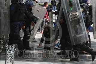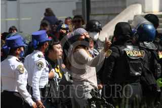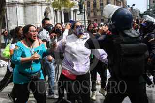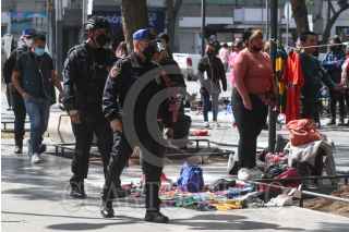 CIUDAD DE MÉXICO, 22ENERO2022.- Personal de la alcaldía Cuauhtémoc y policías auxiliares, tuvieron diversos enfrentamientos con grupos feministas quienes realizaban un protesta mediante la venta de diversos artículos en la periferia de la Alameda Central. FOTO: ROGELIO MORALES /CUARTOSCURO.COM