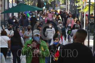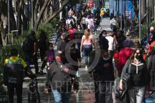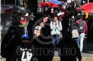 CIUDAD DE MÉXICO, 22ENERO2022.- Pese a el retroceso en el semáforo epidemiólogo a color amarillo, capitalinos continuan inundando las calles del primer cuadro de la ciudad ya sea para realizar compras o cómo salida recreativa. FOTO: ROGELIO MORALES /CUARTOSCURO.COM
