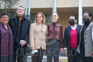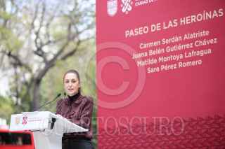 CIUDAD DE MÉXICO, 22ENERO2022.- Claudia Sheinbaum, jefa de Gobierno, encabezó en reconocimiento la develación de las estatuas de Carmen Serdán, Juana Belén Gutiérrez, Matilde Montoya y Sara Pérez sobre Paseo de las Heroínas en Avenida Reforma. La acompañaron Beatriz Gutiérrez Müller, presidenta Honoraira del Consejo de la Coordinación de Memoria Histórica y Cultural de México; Rosa Icela Rodríguez, secretaria de Seguridad Pública y Protección Ciudadana; Ernestina Godoy, fiscal General de la Justicia; José Alfonso Suárez del Real, secreatio de la Jefatura de Gobierno. FOTO: GOBIERNO DE LA CIUDAD DE MÉXICO /CUARTOSCURO.COM