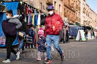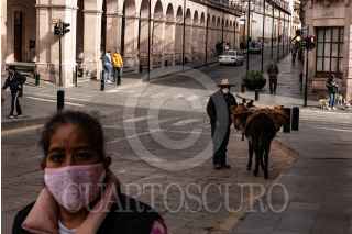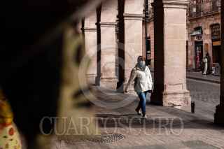 ZACATECAS, ZACATECAS, 22ENERO2022.- Poca afluencia de personas se puedo observar la mañana de este sábado en las principales calles del centro histórico. La tarde de ayer fue declarado el estado en color naranja del Semáforo Epidemiológico, por el alto número de contagios por covid-19 registrados en las últimas 24 horas. El Estado permanecerá en ese color hasta el 6 de febrero, hasta el momento, Zacatecas tiene una ocupación hospitalaria del 57 por ciento; es decir, 168 de las 291 camas, están ocupadas por pacientes infectados; de ellos hay 48 intubados y 120 solo cama hospitalaria. En el Acuerdo General de control sanitario, se determinó limitar el servicio de transporte público a 50 por ciento de su capacidad, se suspenderán eventos masivos, centros recreativos, conciertos, balnearios, ferias y fiestas patronales; los comercios con giros de restaurante y restaurante-bar podrán brindar servicio hasta las 22:00 horas, con 50 por ciento de su capacidad, acomodo de mesas a una distancia mínima de 2 metros y con la práctica de las medidas sanitarias. FOTO: ADOLFO VLADIMIR /CUARTOSCURO.COM
