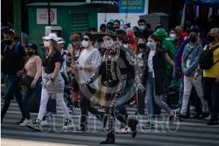 CIUDAD DE MÉXICO, 23ENERO2022.- Un joven caracterizado de catrín con traje de charro camina por Eje Central. La ciudad cambio de semáforo epidemiológico verde a amarillo por el incremento de casos COVID-19. FOTO: ANDREA MURCIA /CUARTOSCURO.COM