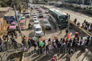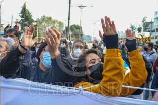 CIUDAD DE MÉXICO. 24ENERO2022.- Estudiantes de diversos estados cerraron la carretera México Toluca en apoyo a las movilizaciones de alumnos y académicos del CiDE. FOTO: VICTORIA VALTIERRA/CUARTOSCURO.COM