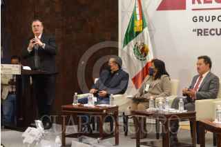 CIUDAD DE MÉXICO, 24ENERO2021.- Ignacio Mier, diputado y coordinador de Morena, en compañía de Marcelo Ebrard, secretario de Relaciones Exteriores, durante la mesa "México actor primordial de la agenda internacional" como parte de la Plenaria de Morena LXV Legislatura de la Cámara de Diputados. FOTO: MARIO JASSO/CUARTOSCURO.COM