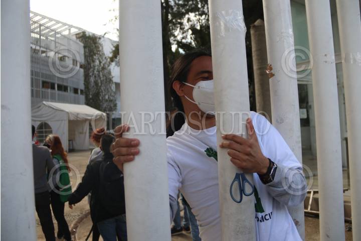 CIUDAD DE MÉXICO. 24ENERO2022.- Comunidad de CIDE, continúa con el bloqueo de la carretera México Toluca, frente a las oficinas de Centro de Investigación; sacaron el escritorio del director Antonio Romero y le realizaron pintas. FOTO: VICTORIA VALTIERRA/CUARTOSCURO.COM