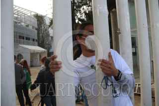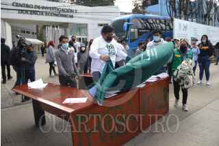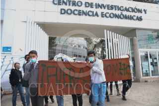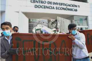 CIUDAD DE MÉXICO. 24ENERO2022.- Comunidad de CIDE, continúa con el bloqueo de la carretera México Toluca, frente a las oficinas de Centro de Investigación; sacaron el escritorio del director Antonio Romero y le realizaron pintas. FOTO: VICTORIA VALTIERRA/CUARTOSCURO.COM