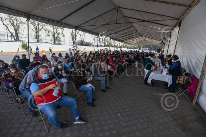 METEPEC, ESTADO DE MÉXICO, 24ENERO2022.- Inició la aplicación del refuerzo de la vacuna contra COVID-19 para adultos de 50-59 años de edad en 87 municipios mexiquenses, en el centro de vacunación ubicada en el Tecnológico Regional de Toluca en donde fue aplicado el biológico AstraZeneca. FOTO: CRISANTA ESPINOSA AGUILAR /CUARTOSCURO.COM