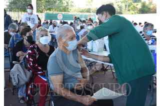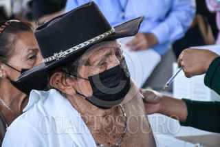 CANCÚN, QUINTANA ROO, 24ENERO2022.- Gran afluencia de adultos mayores acudieron a los módulos de vacunación para la dosis de refuerzo contra el COVID-19. En Cancún se habilitaron centro de vacunación en el domo deportivo Jacinto Canek de Cancún, en las regiones 94 y 96 así como en el Hospital General. FOTOS ELIZABETH RUIZ/CUARTOSCURO.COM