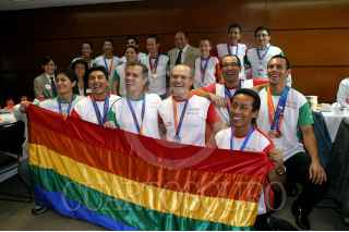 MÉXICO D.F. 10NOVIEMBRE2006.- El diputado David Sánchez Camcho del PRD, durante su reunión con el equipo mexicano de la Gay and Lesbian International Sport Association, quienes parciparon y obtuvieron medallas de oro, plata y bronce en los Outgames Mundiales Montreal 2006, esto en la cámara de diputados. FOTO: GUILLERMO PEREA/CUARTOSCURO.COM