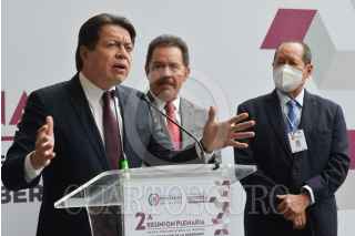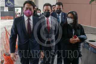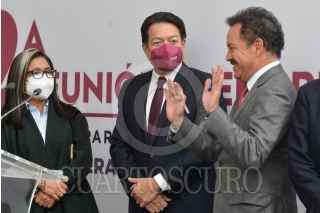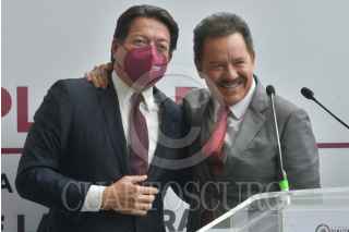CIUDAD DE MÉXICO, 24ENERO2021.- Mario Delgado, dirigente nacional de Morena; Ignacio Mier, diputado y coordinador de Morena; y los diputados: Aleida Alavez, y Leonel Godoy, durante conferencia de prensa con motivo de la Plenaria de Morena LXV Legislatura de la Cámara de Diputados. FOTO: MARIO JASSO/CUARTOSCURO.COM