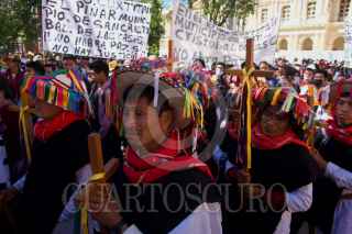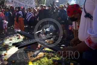 SAN CRISTÓBAL DE LAS CASAS, CHIAPAS, 25ENERO2022.- A once años de la muerte de Tjtotik Samuel Ruiz, la unión del Pueblo Creyente realiza su tradicional marcha y acto político religioso en las principales calles de la ciudad finalizando en la plaza central. Con pancartas, rezos e incienso cientos de personas recuerdan la labor de Tjtotik Samuel en la defensa de sus territorios. En el comunicado que se leyó en la plaza central rememoran la situación de violencia que se vive en sus pueblos dando como ejemplo principal el conflicto entre Aldama y Santa Martha, donde decenas de personas han perdido la vida, también el difícil camino para los migrantes en territorio mexicano recordando el accidente de tránsito donde 56 migrantes fallecieron en la carretera Chiapa de Corzo - San Cristóbal. FOTO: ISABEL MATEOS /CUARTOSCURO.COM