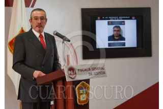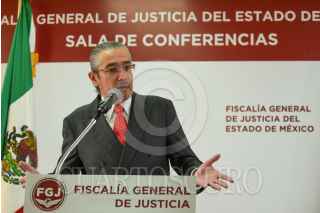 TOLUCA, ESTADO DE MÉXICO, 25ENERO2022.- Alejandro Gómez Sánchez, Fiscal General de Justicia del Estado de México en conferencia de prensa informó sobre la detención de Juan Pedro “N” integrante de una organización criminal y se presume su presuntamente participación en la ejecución de 13 agentes de la Fiscalía el pasado 18 de marzo de 2021 en Coatepec Harinas. FOTO: CRISANTA ESPINOSA AGUILAR /CUARTOSCURO.COM