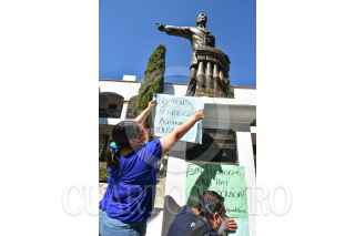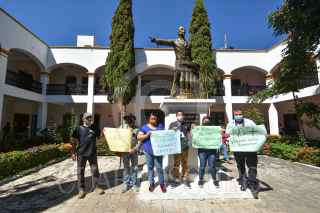 COMITÁN, CHIAPAS, 25ENERO2022.- Periodistas se manifestaron al pie de la estatua de Belisario Domínguez, en el municipio de Comitán, en Chiapas, para exigir justicia por las muertes recientes de compañeros asesinados en diferentes partes del país. FOTO: TOÑO AGUILAR /CUARTOSCURO.COM