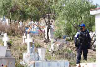CIUDAD DE MÉXICO, 25ENERO2022.- Cerco de seguridad en el panteón de San Nicolás Tolentino en la alcaldía Iztapalapa por el caso de un bebé encontrado sin vida en el penal de San Miguel, en la ciudad de Puebla y que se ha confirmado fue exhumado de este cementerio. FOTO: EDGAR NEGRETE/CUARTOSCURO.COM