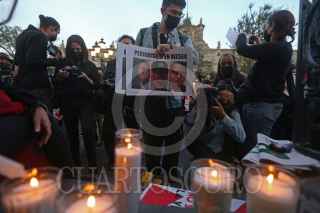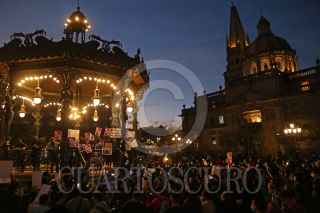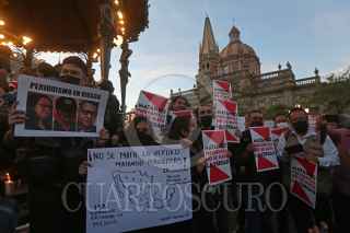GUADALAJARA, JALISCO, 25ENERO2022.- Esta tarde Reporteros, fotógrafos y camarógrafos de Jalisco, se manifestaron en la Plaza de Armas justo frente a Palacio de Gobierno por los recientes asesinatos de Margarito Martínez y Lourdes Maldonado en Tijuana así como José Luis Gamboa en Veracruz, con consignas como #NoSeMataLaVerdad #NiSilencioNiOlvido #PeriodismoEnRiesgo #SinMasPeriodistasEnSusListas como parte de las protestas a nivel nacional en contra de la violencia contra periodistas. FOTO FERNANDO CARRANZA GARCIA / CUARTOSCURO.COM