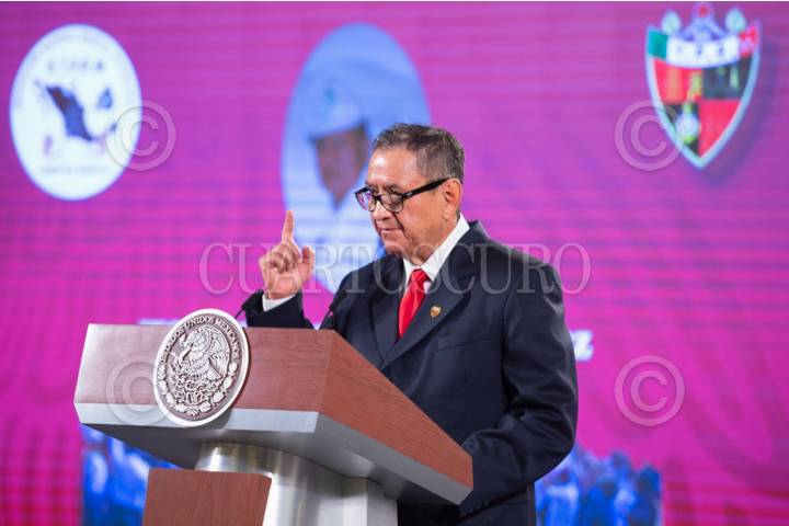 CIUDAD DE MÉXICO, 26ENERO2022.- Andrés Manuel López Obrador, presidente de México, encabezó la conferencia mañanera de este miércoles donde estuvo acompañado por la secretaria de Trabajo, Luisa María Alcalde y por José Luis Gómez Hernández, Pablo González de los Santos, Gerardo David Herrera Malagón, Esteban Izquierdo Avalos y Jorge Martínez, aspirantes a ser elegidos como nuevo secretario general del Sindicato de Trabajadores de Petróleos de la República Mexicana. FOTO: PRESIDENCIA /CUARTOSCURO.COM