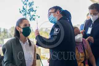 CIUDAD DE MÉXICO, 26ENERO2022.- Claudia Sheinbaum, jefa de Gobierno, acudió esta mañana al Instituto Nacional de Medicina Genómica (Inmegen) para recibir la tercera dosis de la vacuna contra el Covid-19. FOTO: GOBIERNO DE LA CIUDAD DE MÉXICO/CUARTOSCURO.COM