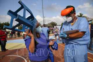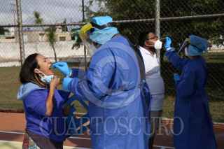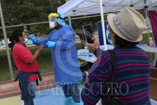 MÉRIDA, YUCATÁN, 26ENERO2022.- Ante el creciente número de contagios por Covid 19 personal de la Secretaría de Salud de Yucatán (SSY) realiza 110 pruebas gratuitas de antígenos en la cancha de basquetbol de la colonia Vergel 3. De acuerdo al último informe de la Secretaría de Salud en el Estado (SSY) en tan sólo 24 horas se reportaron 1,037 nuevos contagios de Coronavirus. En total, son 6,566 las personas fallecidas a causa del Coronavirus desde que empezó la contingencia y se tiene confirmado que 74,645 pacientes ya se recuperaron: no presentan síntomas ni pueden contagiar. Esta cifra representa el 82% del total de contagios registrados, que es 90,941. Actualmente 178 de los casos positivos están en hospitales públicos y en aislamiento total. FOTO: MARTÍN ZETINA/CUARTOSCURO.COM