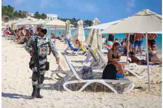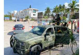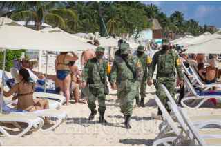 PLAYA DEL CARMEN, QUINTANA ROO, 26ENERO2022.- Elementos del Plan DNIII de la Secretaria de la Defensa Nacional (Sedena) resguardan la popular playa mamitas en este destino turístico, donde anoche fue ejecutado el gerente Federico Mazzoni de origen argentino. Los asesinos del gerente de Playa Mamitas, en Playa del Carmen, huyeron en una moto acuática, confirmó el fiscal general del estado, Oscar Montes de Oca Rosales. FOTO: ELIZABETH RUIZ/CUARTOSCURO.COM<