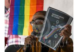 TOLUCA, ESTADO DE MÉXICO, 26ENERO2022.- Ricardo Torres presidente de la Asociación Civil Fuera del Closet presentó el “Informe Anual de Casos 2021” en donde dio a conocer el balance de discriminación y violencia en contra de personas LGBTTTIQ+ en el Estado de México en el 2020 y 2021. FOTO: CRISANTA ESPINOSA AGUILAR /CUARTOSCURO.COM