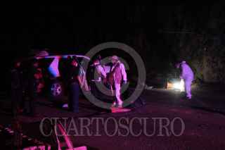 CHILPANCINGO, GUERRERO, 27ENERO2022.- Miembros del grupo criminal Los Ardillos atacaron a balazos la comandancia de la policía de la Unión de Pueblos y Organizaciones del Estado de Guerrero, en la localidad de Buenavista de la Salud, municipio de Chilpancingo, dejó cuatro policías muertos, entre ellos el comandante y maestros de la CETEG, Mario Zamora Maldonado, tres miembros de la organización heridos y un civil armado muerto. En un boletín de la Mesa de Coordinación para la Construcción de la Paz informó que policías estatales al transitar en la carretera federal México– Acapulco, en el crucero de la comunidad de Acahuizotla, “tuvieron contacto con tres vehículos en los que se trasladaban civiles armados, quienes al notar presencia de los agentes iniciaron una agresión armada. En estos hechos perdieron la vida dos civiles armados, quienes vestían equipo táctico y portaban fusiles de alto poder. Ningún policía resultó herido”. Fuentes policiacas recibieron a las 6:30 de la tarde una llamada al número de emergencia 911, que había una fuerte balacera en esta comunidad, ubicada a media hora de Chilpancingo. Versiones policiacas indican que civiles armados a bordo de seis camionetas llegaron a la base de la policía de la UPOEG, ubicada frente a la carretera federal México – Acapulco y atacaron a balazos con armas largas calibre 50 y AR-15.En el inmueble había ocho policías de la organización, quienes repelieron la agresión y el enfrentamiento armado duró una hora. En el ataque armado cuatro policías de la organización murieron, uno de ellos era el comandante y maestro de la Coordinadora Estatal de Trabajadores de la Educación en Guerrero (CETEG) Mario Zamora Maldonado y tres miembros más resultaron heridos de bala y un civil armado muerto. FOTO: DASSAEV TÉLLEZ ADAME/CUARTOSCURO.COM