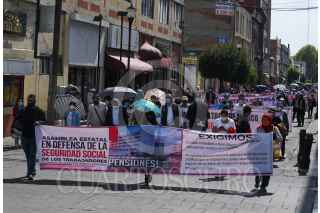 TOLUCA, ESTADO DE MÉXICO, 27ENERO2022.- Pensionados y jubilados del ISSEMYM marcharon por las calles de Toluca en contra de las reformas a la Ley ISSEMYM, piden se realice una auditoría externa, así como la exigencia de medicamentos y atención médica. FOTO: CRISANTA ESPINOSA AGUILAR /CUARTOSCURO.COM