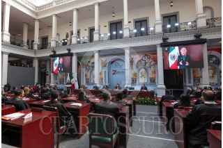 TOLUCA, ESTADO DE MÉXICO, 27ENERO2022.- El Magistrado Ricardo Sodi Cuellar, Presidente del Tribunal Superior de Justicia del Estado de México y del Consejo de la Judicatura rindió su Segundo Informe, acompañado por el Gobernador mexiquense Alfredo del Mazo Maza. FOTO: CRISANTA ESPINOSA AGUILAR /CUARTOSCURO.COM