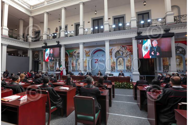 TOLUCA, ESTADO DE MÉXICO, 27ENERO2022.- El Magistrado Ricardo Sodi Cuellar, Presidente del Tribunal Superior de Justicia del Estado de México y del Consejo de la Judicatura rindió su Segundo Informe, acompañado por el Gobernador mexiquense Alfredo del Mazo Maza. FOTO: CRISANTA ESPINOSA AGUILAR /CUARTOSCURO.COM