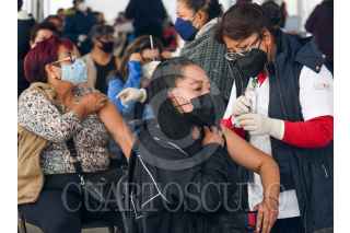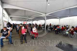 TOLUCA, ESTADO DE MÉXICO, 27ENERO2022.- Adultos de 50 a 59 años de edad acudieron al Centro de Vacunación del Estadio Nemesio Diez a recibir su refuerzo de la vacuna contra COVID-19 aplicándoles el biológico de AstraZeneca. FOTO: CRISANTA ESPINOSA AGUILAR /CUARTOSCURO.COM