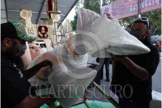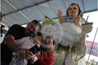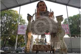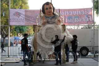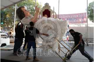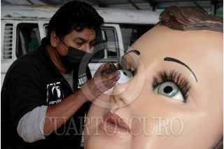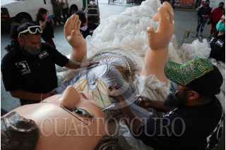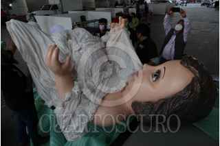 CIUDAD DE MÉXICO, 27ENERO2022.- Previo a la celebración del Día de la Candelaria, integrantes del Taller Morphix Group, conformado por la Familia Resendiz Gómez colocaron el Niño Dios más grande, conocido como el "Niño Dios de la Paz y el Bien" en la explanada de la Macroplaza de la alcaldía Iztapalapa. El Niños Dios está hecho a base de un esqueleto con músculos de aire, pintado al temple con óleo y resina de cristal en los ojos, las pestañas están hechas de creel de caballo, mide 5 metros y pesa media tonelada. Su mensaje es pedir una oración de Paz, Salud y Esperanza al mundo por la cuarta ola de la pandemia del Covid-19; y su tradición es homenajear y recordar a las personas que se mantienen vivas. FOTO: GRACIELA LÓPEZ/CUARTOSCURO.COM