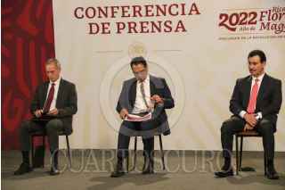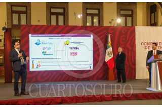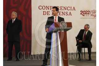 CIUDAD DE MÉXICO. 28ENERO2022.- El Presidente Andrés Manuel López Obrador, en la conferencia de las mañanas estuvo acompañado de Hugo López Gatell, sub secretario de Salud así como de Miguel Reyes y Mario Morales funcionarios de CFE, en el salón tesorería de Palacio Nacional. FOTO: VICTORIA VALTIERRA/CUARTOSCURO.COM