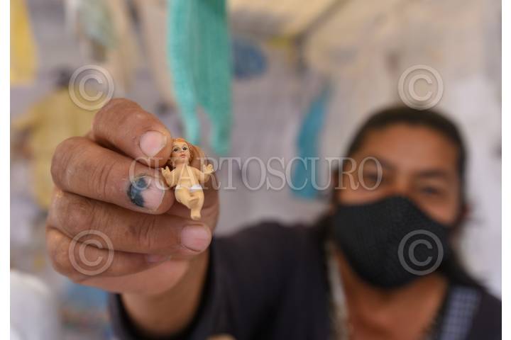 TOLUCA, ESTADO DE MÉXICO, 28ENERO2022.- Comerciantes de temporada que se dedican a la reparación de imágenes religiosas como el Niño Dios y venta de vestidos, se encuentran instalados en el estacionamiento del Parque Colosio en la ciudad de Toluca, reportan que han tenido bajas ventas y esperan que esta situación mejore este fin de semana, a unos días de la celebración del Día de la Candelaria. El año pasado no pudieron instalarse por las diversas medidas que se mantuvieron ante la contingencia por COVID-19. FOTO: CRISANTA ESPINOSA AGUILAR /CUARTOSCURO.COM