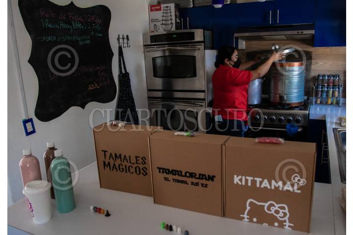 CIUDAD DE MÉXICO, 30ENERO2022.- Luego de que su rosca de reyes con Baby Yoda se hiciera viral el proyecto de Las Super Roscas (@lassuperroscas en redes sociales) lanzaron tamales con personajes de mandalorian, Harry Potter y Hello Kitty con motivo del día de la candelaria, el kit cuesta $500 pesos e incluye 10 tamales surtidos, muñecos miniaturas del personaje, un litro de atole de sabor y una bomba de chocolate. En su menú tienen sabores tradicionales como fresa, mole, rajas con queso y otros exóticos como lavanda, arroz con leche, guajilllo entre otros. Su negocio ha crecido tanto que ya tienen 20 personas trabajando en el proyecto. Toman los pedidos vía redes sociales y whats app y entregan a domicilio. FOTO: ANDREA MURCIA /CUARTOSCURO.COM