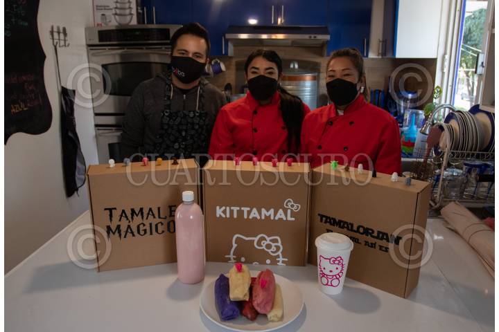 CIUDAD DE MÉXICO, 30ENERO2022.- Luego de que su rosca de reyes con Baby Yoda se hiciera viral el proyecto de Las Super Roscas (@lassuperroscas en redes sociales) lanzaron tamales con personajes de mandalorian, Harry Potter y Hello Kitty con motivo del día de la candelaria, el kit cuesta $500 pesos e incluye 10 tamales surtidos, muñecos miniaturas del personaje, un litro de atole de sabor y una bomba de chocolate. En su menú tienen sabores tradicionales como fresa, mole, rajas con queso y otros exóticos como lavanda, arroz con leche, guajilllo entre otros. Su negocio ha crecido tanto que ya tienen 20 personas trabajando en el proyecto. Toman los pedidos vía redes sociales y whats app y entregan a domicilio. FOTO: ANDREA MURCIA /CUARTOSCURO.COM