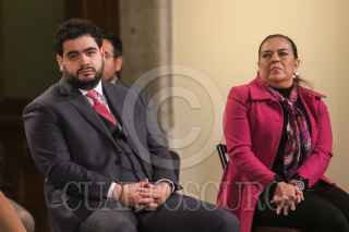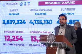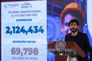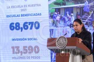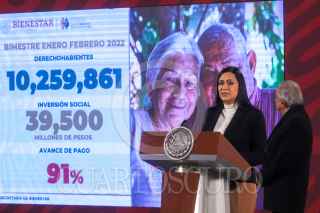 CIUDAD DE MÉXICO, 31ENERO2022.- Andrés Manuel López Obrador, Presidente de México, durante la conferencia de prensa en el Salón Tesorería de Palacio Nacional. Lo acompañaron: Ariadna Montiel Reyes, secretaria de Bienestar; Juan Pablo de Boton, subsecretario de Egresos de Hacienda; María Rocío García, subsecretaria de Bienestar; Carlos Torres Rosas, coordinador de Programas Integrales para el Desarrollo; Ricardo Sheffield Padilla, procurador Federal del Consumidor; Marath Bolaños López, subsecretario de Empleo y Productividad Laboral; Pamela López Ruíz, titular del Programa La Escuela es Nuestra, y Abraham Vázquez Piceno, coordinador del Programa de Becas para el Bienestar. FOTO: MOISÉS PABLO/CUARTOSCURO.COM