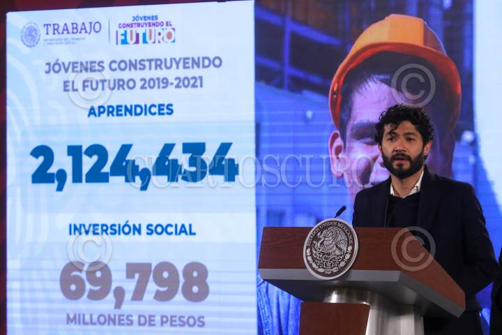 CIUDAD DE MÉXICO, 31ENERO2022.- Andrés Manuel López Obrador, Presidente de México, durante la conferencia de prensa en el Salón Tesorería de Palacio Nacional. Lo acompañaron: Ariadna Montiel Reyes, secretaria de Bienestar; Juan Pablo de Boton, subsecretario de Egresos de Hacienda; María Rocío García, subsecretaria de Bienestar; Carlos Torres Rosas, coordinador de Programas Integrales para el Desarrollo; Ricardo Sheffield Padilla, procurador Federal del Consumidor; Marath Bolaños López, subsecretario de Empleo y Productividad Laboral; Pamela López Ruíz, titular del Programa La Escuela es Nuestra, y Abraham Vázquez Piceno, coordinador del Programa de Becas para el Bienestar. FOTO: MOISÉS PABLO/CUARTOSCURO.COM