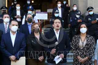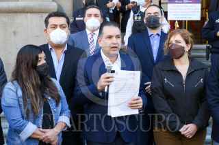 CIUDAD DE MÉXICO, 31ENERO2022.- Christian Von Roehrich, coordinador de los diputados en el Congreso de la Ciudad de México; Andrés Atyde, dirigente local del PAN, y diputados locales acudieron a la Suprema Corte de Justicia de la Nación a interponer una acción de inconstitucionalidad en contra del aumento de las tarifas del agua del 35% en la CDMX, la cual afectarán a varias colonias que son gobernadas por partidos de oposición. FOTO: MOISÉS PABLO/CUARTOSCURO.COM