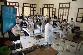 MÉRIDA, YUCATÁN, 31ENERO2022.- Esta mañana, alumnos de la Facultad de Medicina de la Universidad Autónoma de Yucatán regresaron a clases presenciales pese al incremento de casos de contagios confirmados por Covid 19 en la entidad. FOTO: MARTÍN ZETINA/CUARTOSCURO.COM