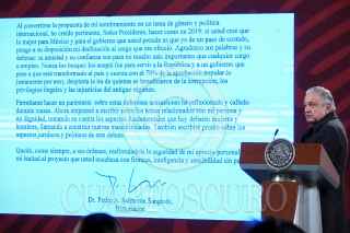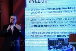 CIUDAD DE MÉXICO, 01FEBRERO2022.- El presidente Andrés Manuel López Obrador encabezó la conferencia de prensa en Palacio Nacional, en donde cada martes se presenta el informe de El Pulso de la Salud a cargo de: Jorge Alcocer, secretario de Salud; Hugo López-Gatell, subsecretario de Prevención y Promoción a la Salud; Delfina Gómez, secretaria de Educación; Marcelo Ebrard, secretario de Relaciones Exteriores, y Luis Cresencio Sandoval, secretario de la Defensa Nacional, con el motivo de informar sobre el tratamiento y avances de la pandemia por Covid-19. Posteriormente, el jefe del ejecutivo se dedicó a responder cuestionamientos de los comunicadores. FOTO: GALO CAÑAS/CUARTOSCURO.COM