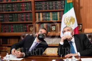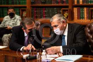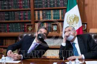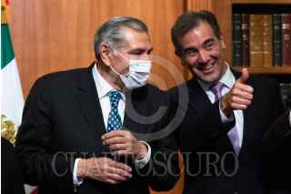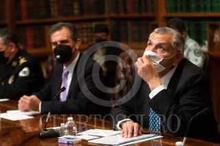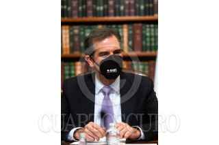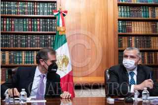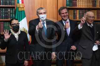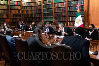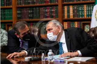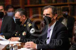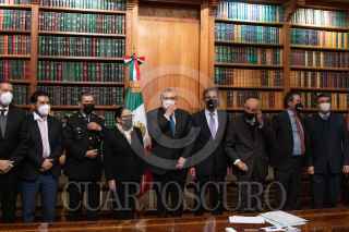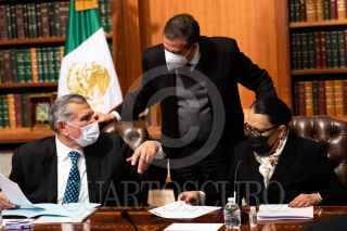 CIUDAD DE MÉXICO, 01FEBRERO2022.- Luis Rodríguez Bucio, comandante general de la Guardia Nacional; Adán Augusto López, secretario de Gobernación; Lorenzo Córdova, consejero presidente del INE; Rosa Icela Rodríguez, secretaria de Seguridad y Protección Ciudadana; José Agustín Pinchetti, titular de la Fiscalía Especializada en materia de Delitos Electorales (FEDE), y Ricardo Mejía Berdeja, subsecretario de Seguridad, durante la instalación de la Mesa de Seguridad Elecciones 2022 y Proceso de Revocación de Mandato, en la Biblioteca Manuel Gómez Morín de la SEGOB. FOTO: MOISÉS PABLO/CUARTOSCURO.COM