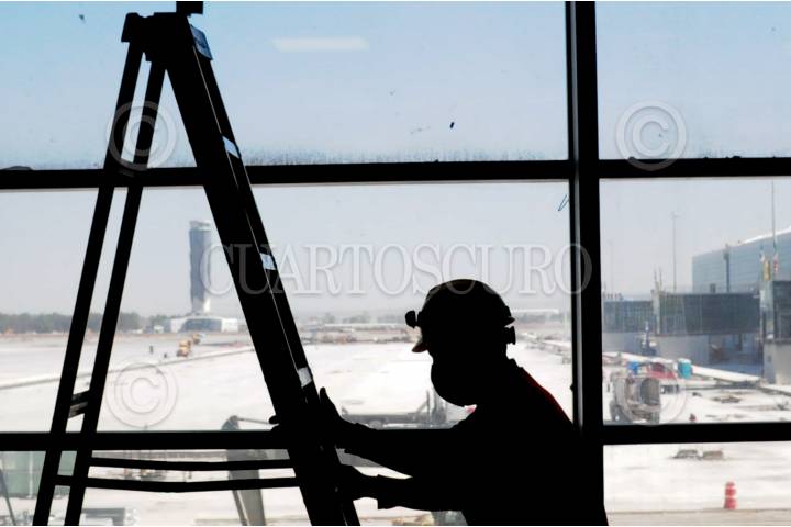 TECÁMAC, EDOMEX, 01FEBRERO2022.- A pocas semanas para su inauguración, la terminal del nuevo Aeropuerto Internacional Felipe Ángeles (AIFA), trabajadores y elementos del agrupamiento de ingenieros del ejército continúan con las labores para que el proyecto sea entregado el próximo 21 de marzo. Esta terminal recibirá a millones de usuarios con lo que buscan desaturar el AICM. FOTO: DANIEL AUGUSTO /CUARTOSCURO.COM
