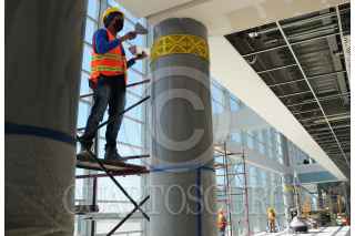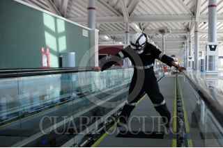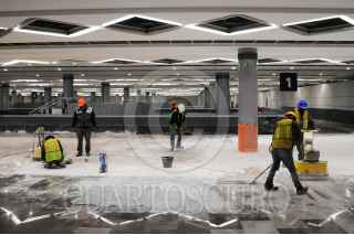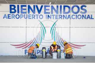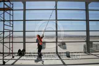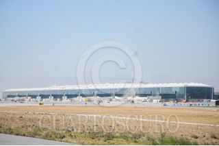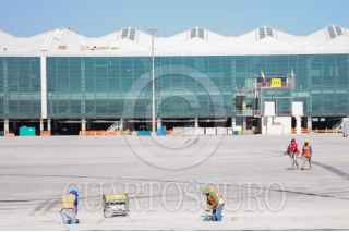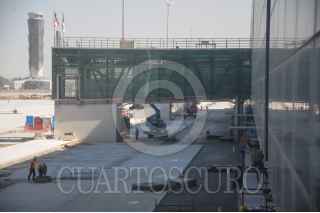 TECÁMAC, EDOMEX, 01FEBRERO2022.- A pocas semanas para su inauguración, la terminal del nuevo Aeropuerto Internacional Felipe Ángeles (AIFA), trabajadores y elementos del agrupamiento de ingenieros del ejército continúan con las labores para que el proyecto sea entregado el próximo 21 de marzo. Esta terminal recibirá a millones de usuarios con lo que buscan desaturar el AICM. FOTO: DANIEL AUGUSTO /CUARTOSCURO.COM
